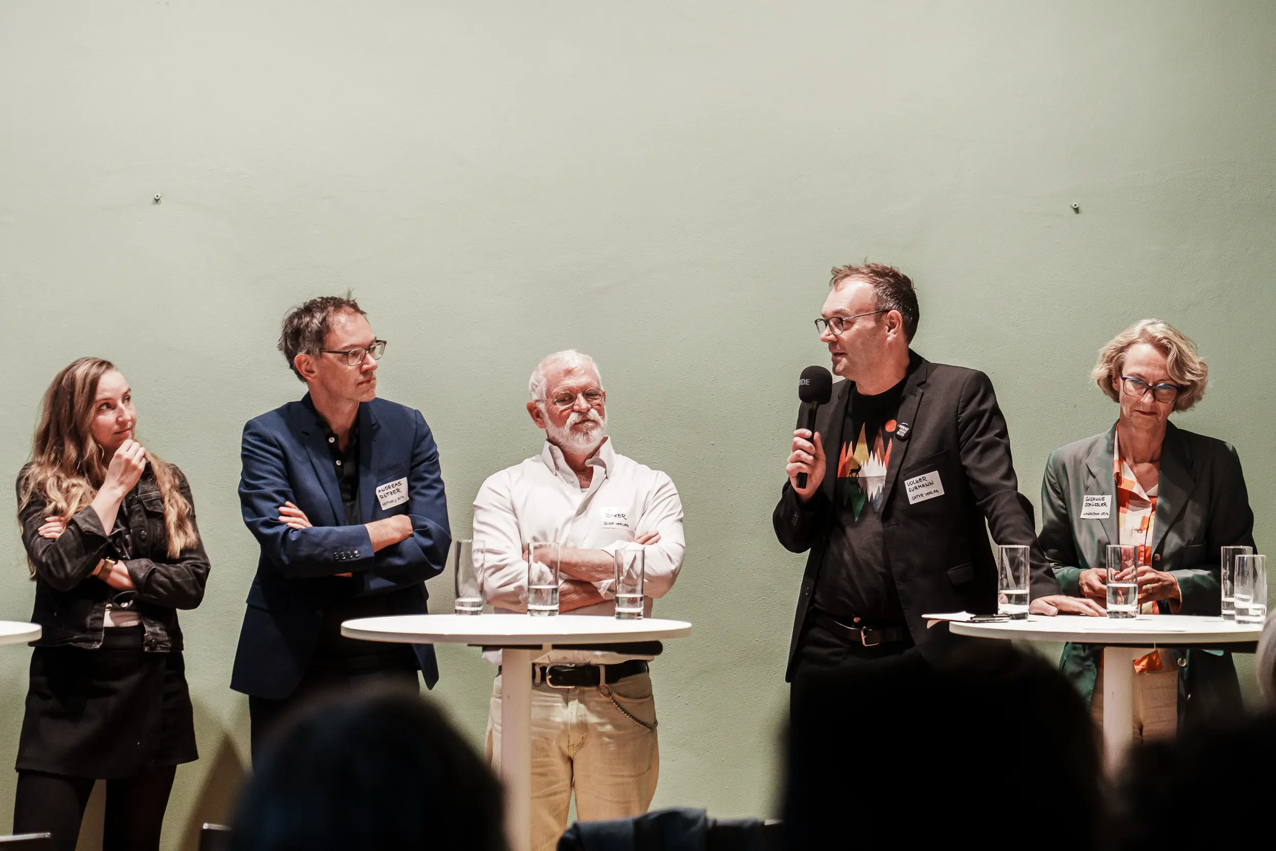 Der Berliner Buchhändler Club richtete gemeinsam mit dem Freundeskreis des Literaturhauses und dem Freundeskreis des Nicolaihauses einen Themenabend zur Zukunft der unabängigen Verlage aus. Zwölf Verlegerinnen und Verleger diskutierten mit Branchenvertretern, Buchhändlerinnen und Buchhändlern, Vertreterinnen und Vertretern aus der Presse und der Kulturpolitik zentrale Fragen zur Gegenwart und Zukunft unabhängiger Verlage. Bei der von Martina Tittel moderierten Podiumsdiskussion standen viele Themen und Herausforderungen im Fokus: